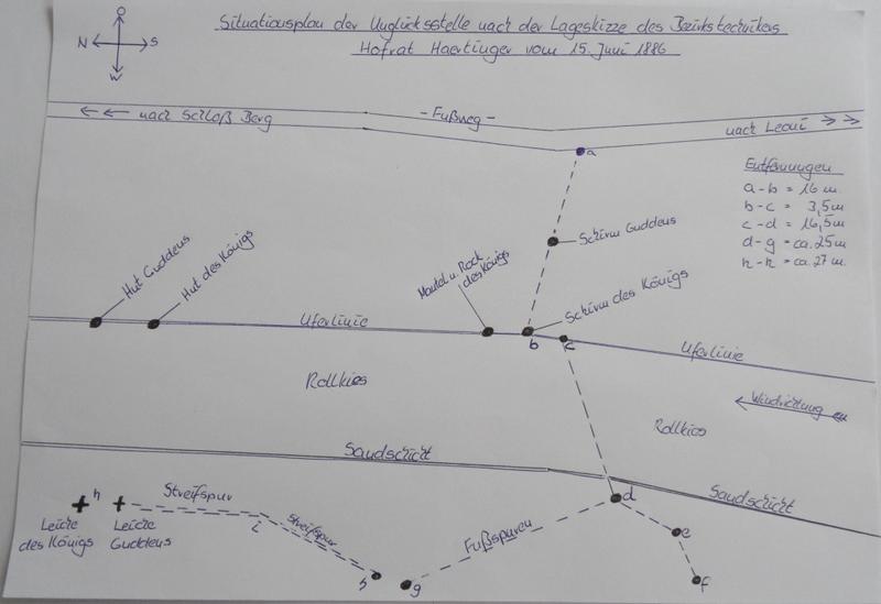 - Nachdem der König sich bei Punkt a von Gudden getrennt hatte, holte Gudden den König bei b wieder ein.